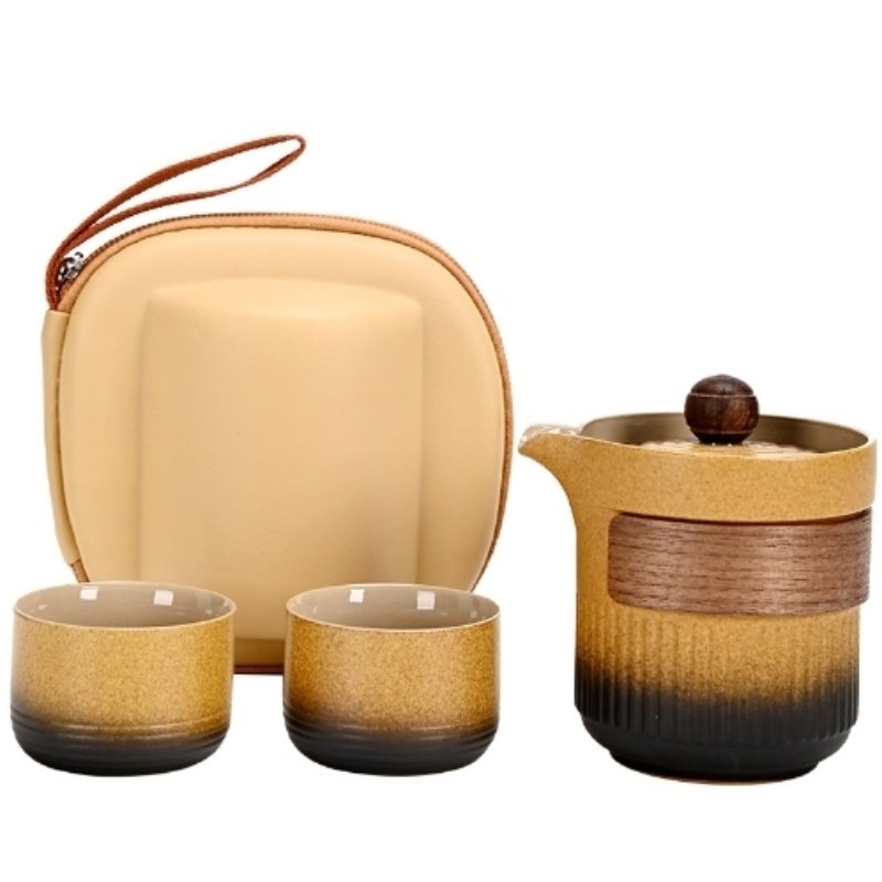 Yellow Black Gradient Ceramic Portable Travel Tea and Coffee Kit for One Set