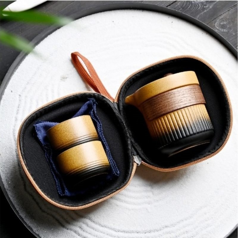 Be the first to review “Yellow Black Gradient Ceramic Portable Travel Tea and Coffee Kit for One Set”