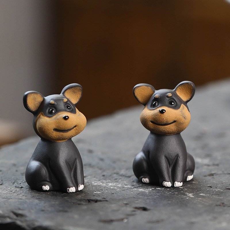 Zisha Handmade Chinese Kongfu Cute Tea Pet Bee Dog Tea Accessories Desk Decoration.Made from high-quality Zisha clay, a material known for its durability and ability to develop a smooth patina over time, this tea pet features an adorable design of a bee dog. In Chinese culture, dogs are symbols of loyalty, protection, and good fortune, making this piece not only charming but also rich in symbolism. The warm, earthy tones of the Zisha clay enhance the dog’s playful and welcoming expression, making it a perfect addition to any tea tray. Its compact design ensures it fits seamlessly into Gongfu tea setups, adding a touch of personality without overwhelming the space.In addition to its visual charm, the Zisha Handmade Chinese Kongfu Cute Tea Pet Bee Dog Tea Accessories Desk Decoration serves a traditional function in Gongfu tea ceremonies. Tea pets, such as this delightful bee dog, are believed to absorb the first few pours of tea during a ceremony, symbolizing the invitation of positive energy and prosperity into the home. This practice is a long-standing tradition in Chinese tea culture, adding depth and meaning to each tea session. As the tea pet absorbs more tea over time, it begins to develop a unique patina that further enhances its individuality and character. This transformation is part of the charm of using a tea pet—it becomes a cherished companion, growing with each tea ceremony. The more tea it absorbs, the more it reflects the personal connection between the user and the ritual.